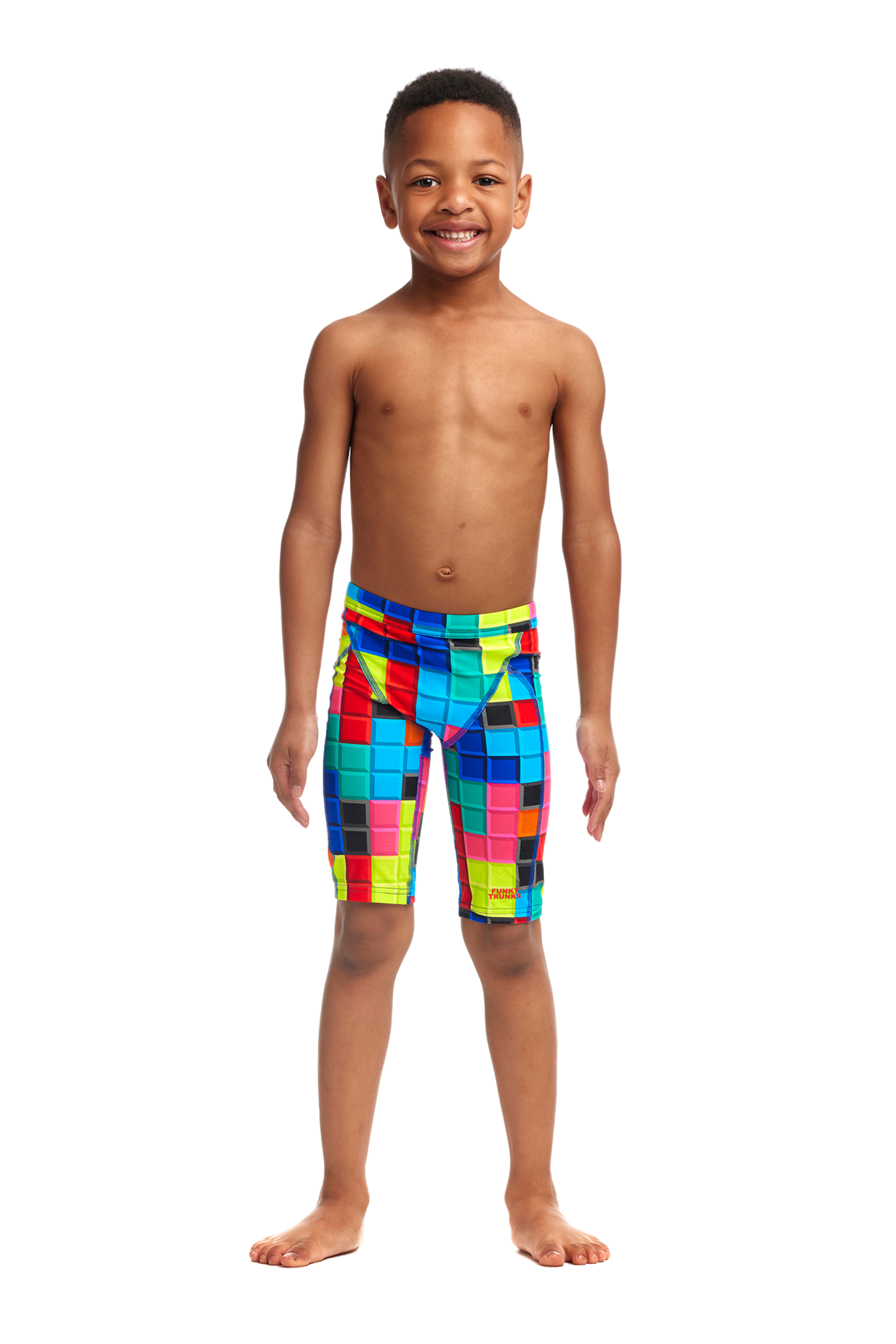Джаммеры FUNKY TRUNKS Toddler Boys Blocked – стиль и комфорт для будущих чемпионов! Яркий геометрический принт и совершенная посадка для самых маленьких пловцов.