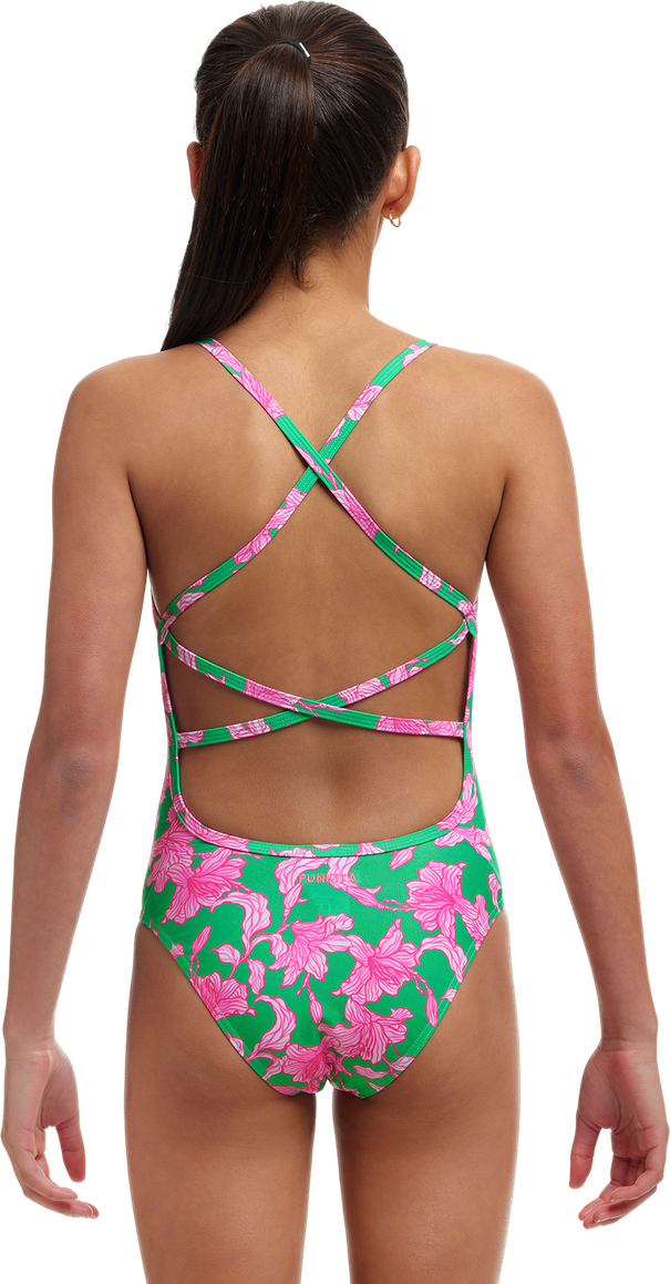 Купальник FUNKITA Girl's Strapped In One Piece Blossom Fly – цветущая легкость и грация! Элегантный дизайн для побед в бассейне.