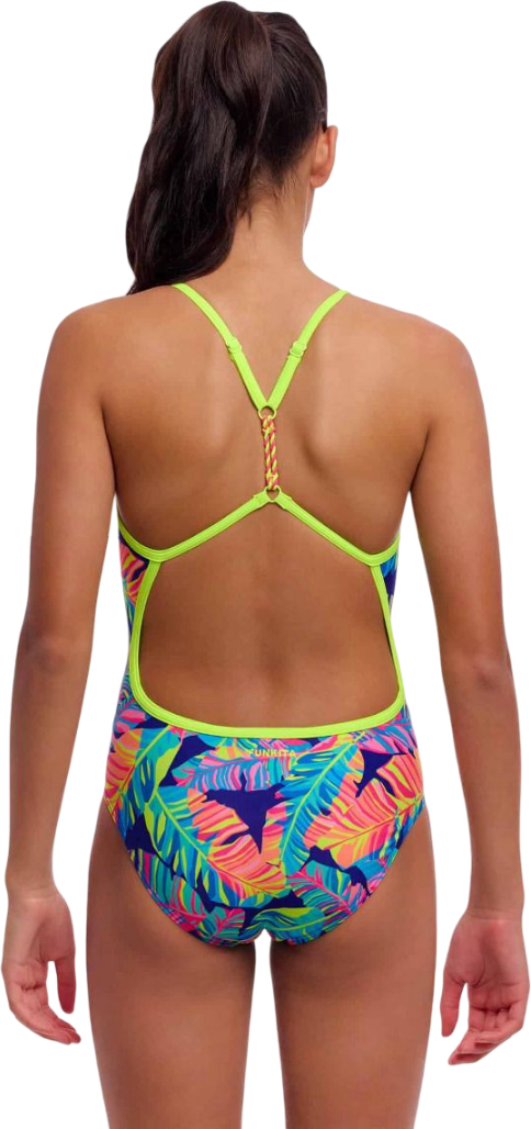 Купальник FUNKITA Girl's Twisted One Piece Leaving Today – переливающиеся перья и элегантность! Роскошный дизайн с ремешковой спинкой для побед в бассейне.