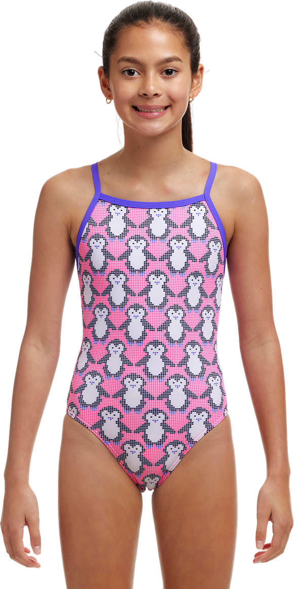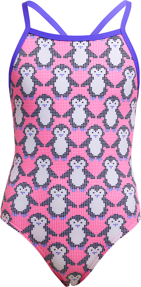Купальник FUNKITA Girl's Tie Me Tight One Piece Pixi Pengi – волшебные пингвины и стиль! Очаровательный дизайн с регулируемой шнуровкой для побед в бассейне.