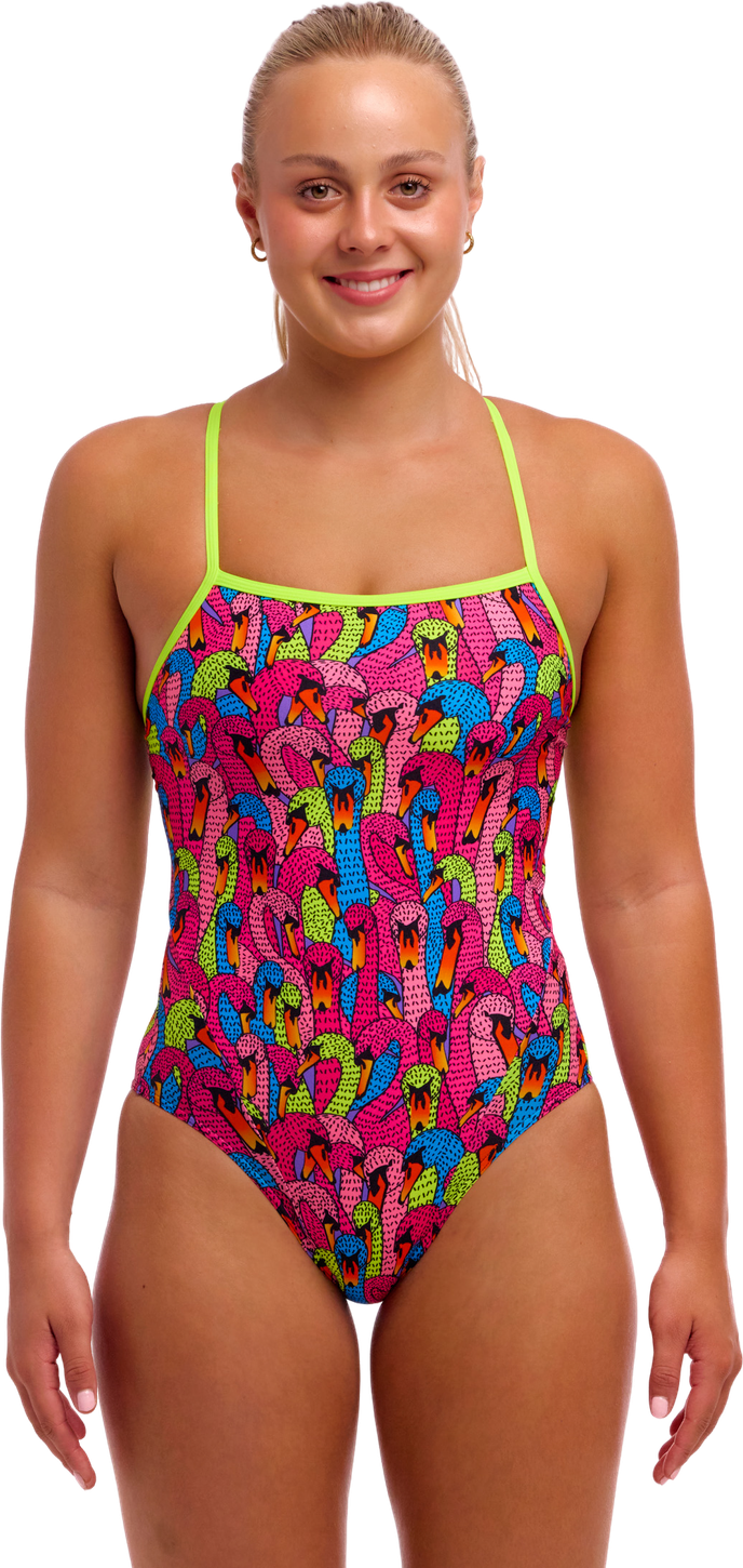 Купальник FUNKITA Swan City (Single Strap) – изысканная модель с одной бретелью и аристократичным лебединым принтом.