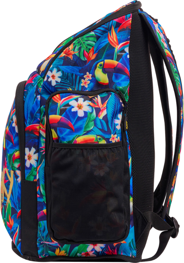 Вместительный рюкзак базовым объемом 36 л с возможностью расширения до 40 л предлагает продуманную организацию пространства. Специальные отделения включают мягкий отсек с тканевой подкладкой для очков, водонепроницаемое основное отделение для мокрых вещей, дышащий отсек для обуви и сетчатый карман для бутылки. В основном отделении предусмотрен большой карман для ноутбука. Анатомическая спинка с мягкими подушками и регулируемые лямки с нагрудным ремнем обеспечивают комфортную переноску. Яркий дизайн с принтом Birdie Wordie добавляет индивидуальности.